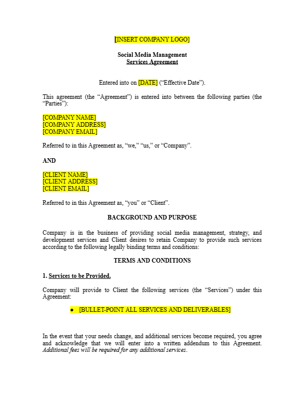 Social Media Manager Agreement Template